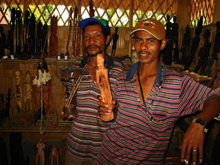 Most people return from Atauro with at least one piece of wooden sculpture made by the villagers of Makhili. There's a shop @ Tua Ko'in Eco Lodge that has the works of about 10 guys - you see the names of the artist on the price tag. Marcus (the younger guy) is the leader of the group and he said the lodge didn't charge them any commission for displaying their stuff there. He also goes to Dili regularly and you can commission works from them. Call him @ 7353578 but i think he speaks only Tetum and Bahasa Indo. Jill J. and 2 friends were also at the lodge same time as us. They went a-walking to Makhili directly, and came back by boat (~$25) armed with big sculptures that a man in his 40s said he'd carved when he was 17. So if you're up for a good 1.5 hour walk along the mangrove and rock beach, and then scrambling up a footpath, you can visit the village itself. Of course, you can always hire a boat to and from there. There're no good roads to Makhili.