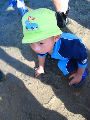 Here're some pic from our exhausting and very hot day out at Chek Jawa, Ubin last Saturday. Val saw sea stars up close, dug his hands into the gooey mud, traipsed all around threatening to snuff out sea anemones, and threw plenty of dirt at crabs. The little boy did so well.... still full of energy after the excursion (he had only a catnap) while the rest of the 4 adults with him were absolutely bushwhacked. I was almost close to tears trying to beg him to take another nap. The pocket dynamite fell asleep only at 530pm... gosh.. needless to say, it was a crazy night for me later on.....i think i'm still suffering from that ambitious day out.